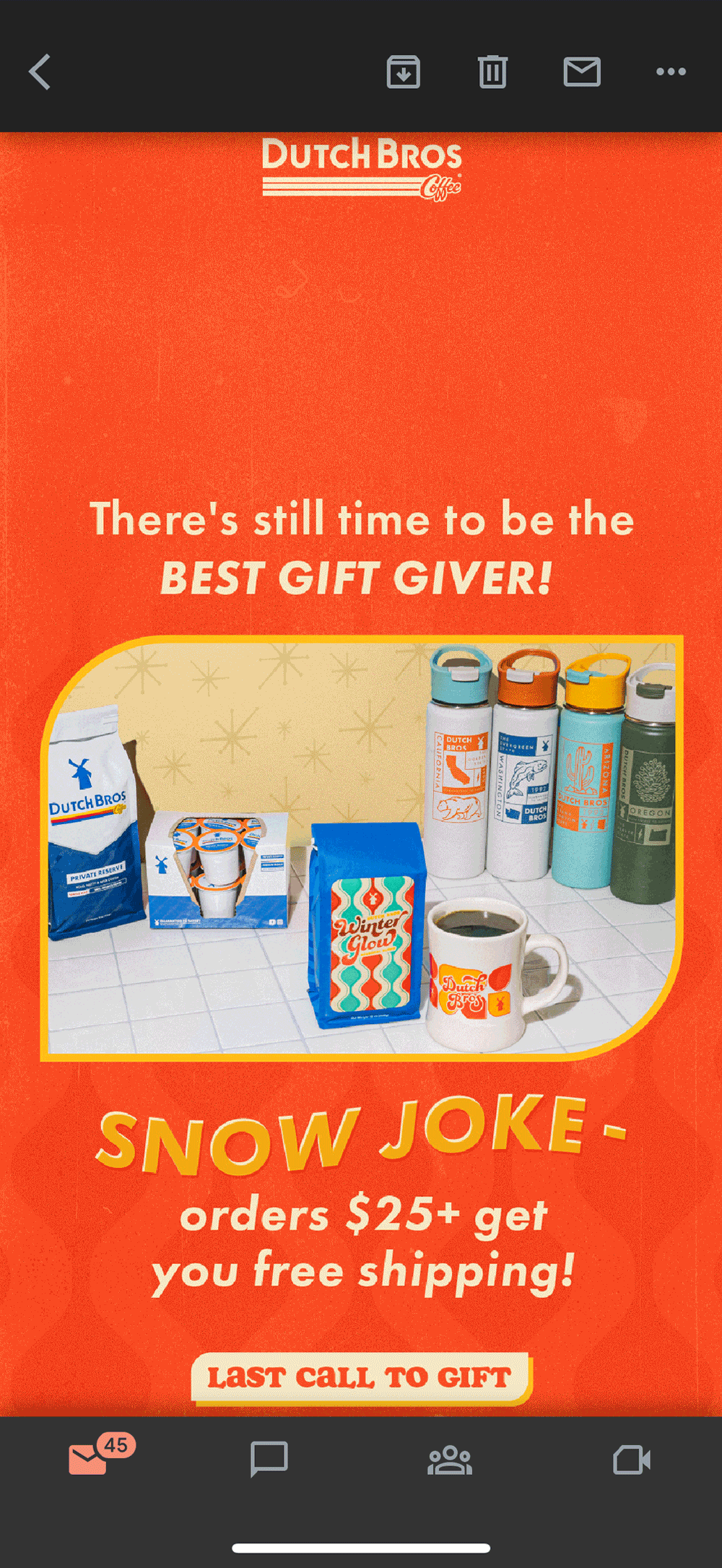 Dutch Bros planned to introduce holiday flavors based on their main drinks (Cold Brew, Coffee, and Rebel). The Holiday Trio included Peppermint Bliss cold brew, Hazelnut Truffle Mocha, and Glacier Peak Rebel. They also aimed to highlight a non-dairy option with the Cinnamon Swirl Oat milk latte. In December They launched their seasonal blend of coffee Winter Glow along with other merchandise sales.